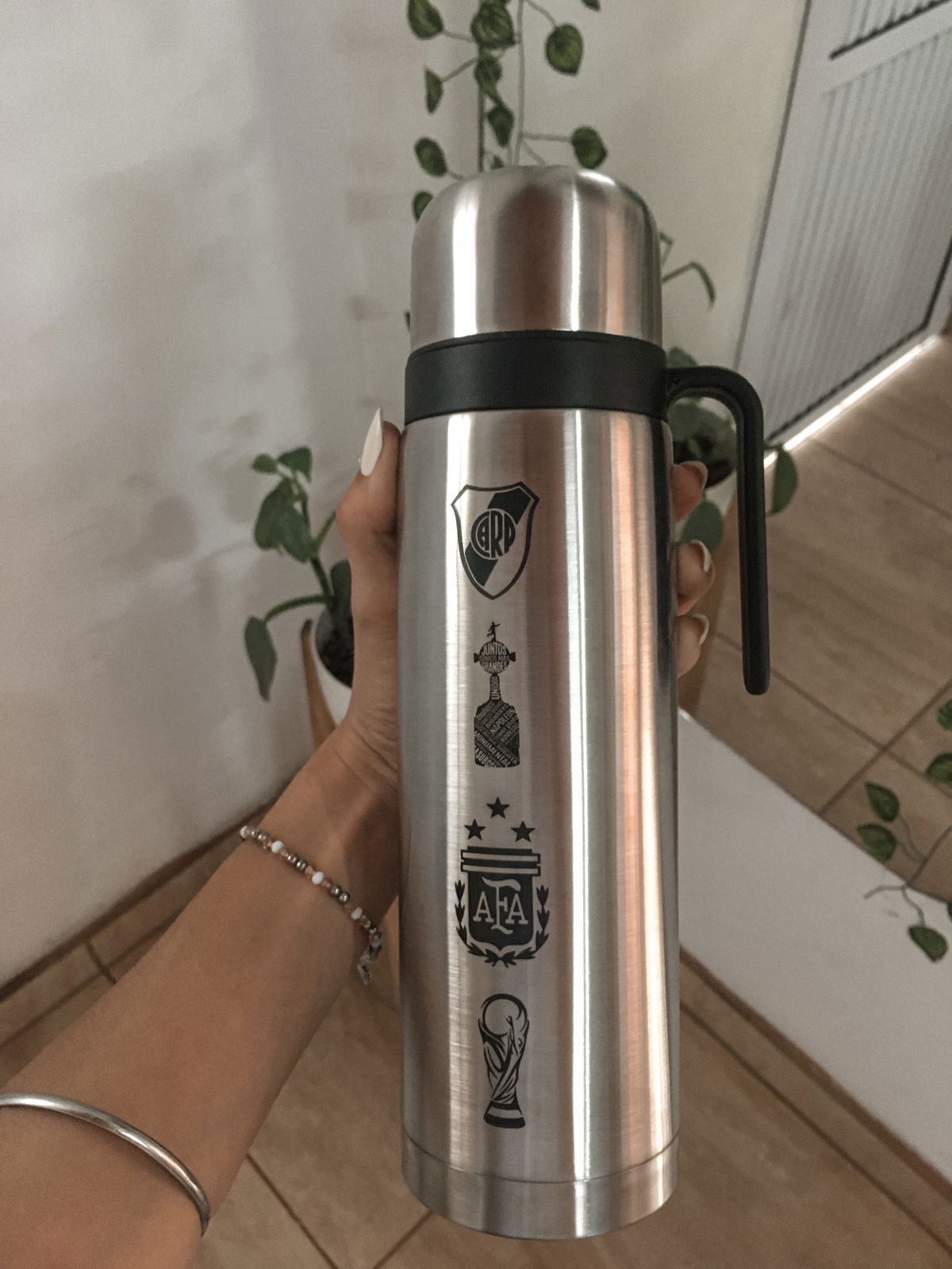 TERMO PLATA DE MEDIA MANIJA CON CAPACIDAD DE 1 LITRO PERSONALIZADO A ELECCION CON UN MAXIMO DE 4 LOGOS